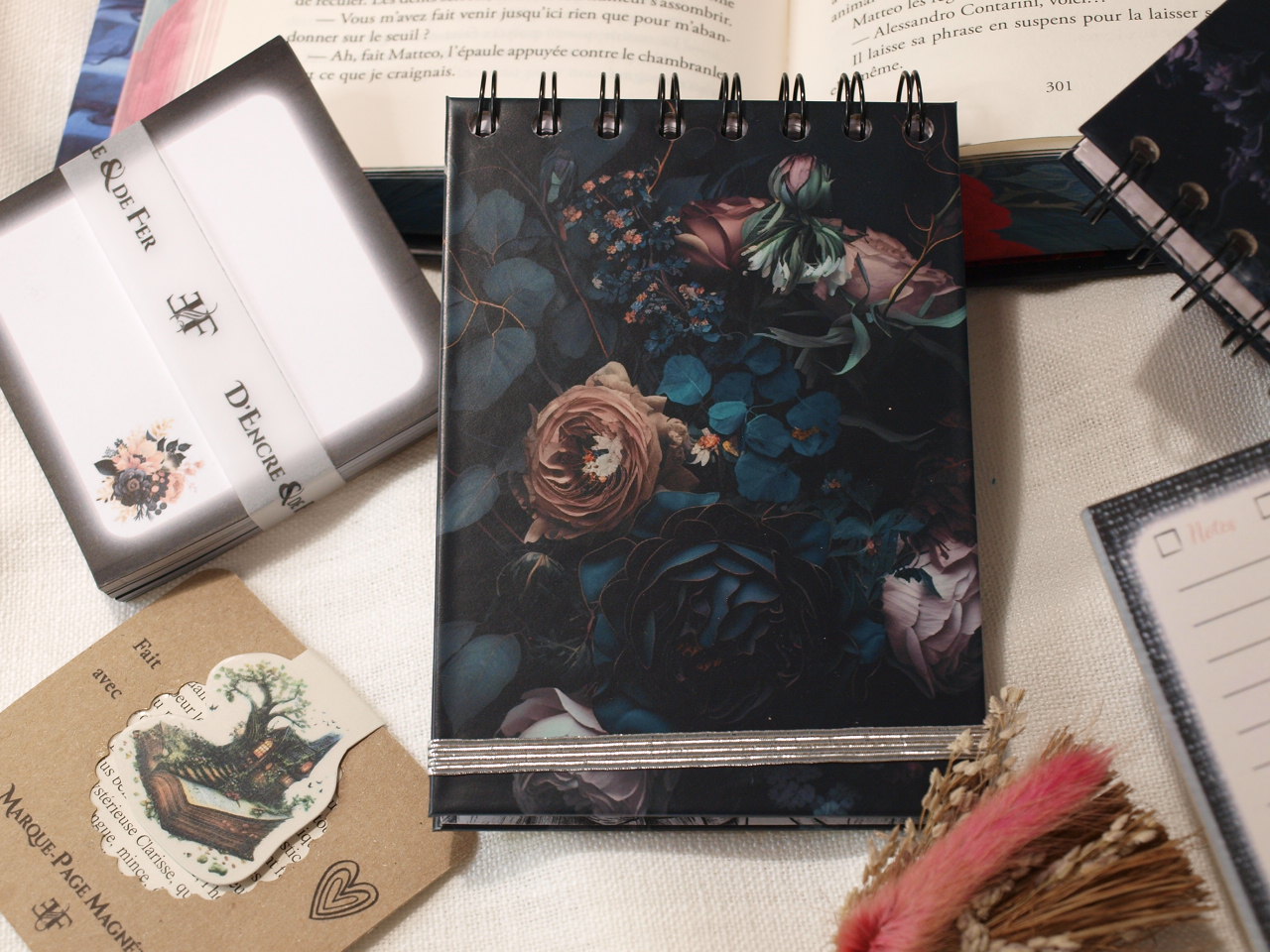 Un carnet rigide inspiré par la beauté brute des fleurs sombres, pensé pour capturer les idées spontanées, les croquis rapides et les instants d’expression libre.